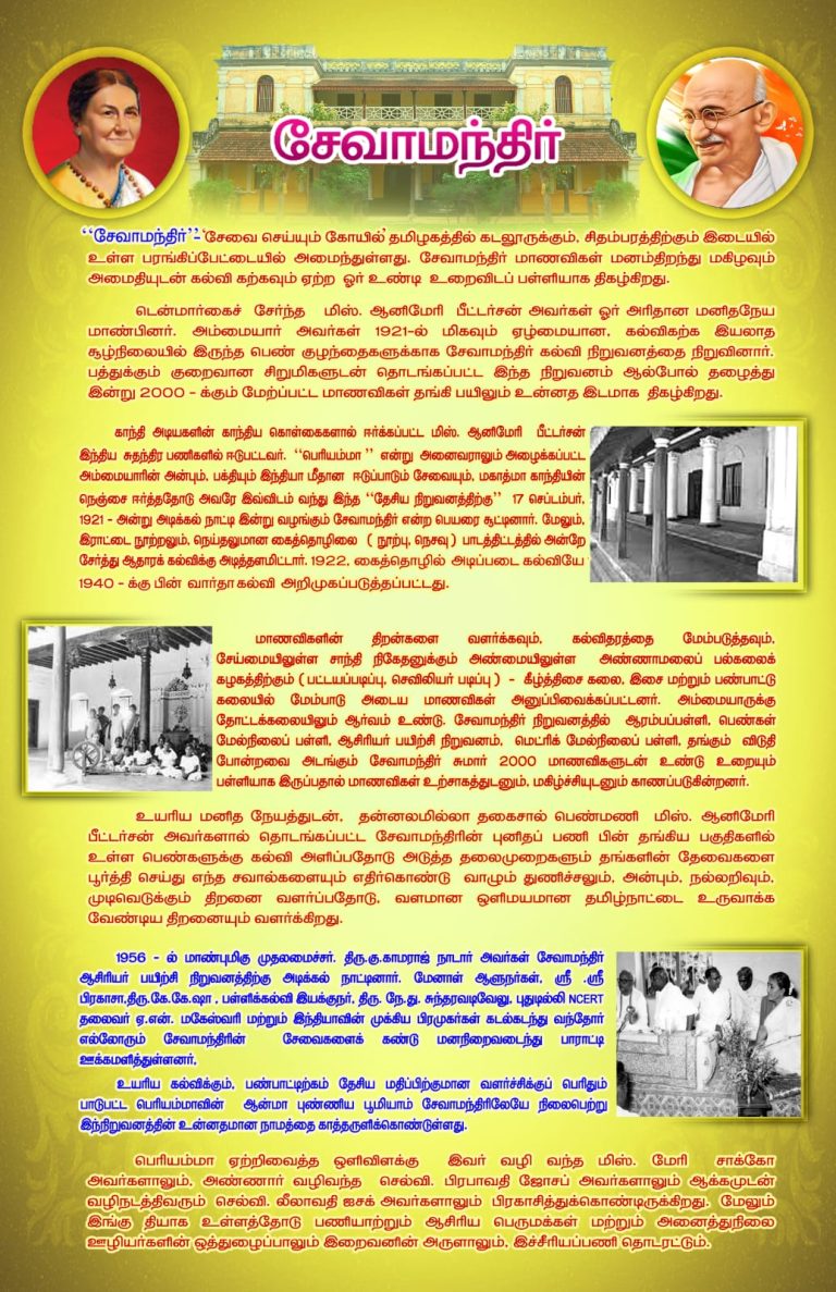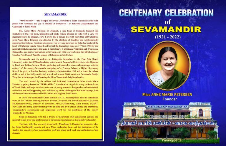 We, who keep burning the light lit by our Periamma hope that those who have passed through the portals of Sevamandir will continue to remember their Alma-Mater with grateful hearts.